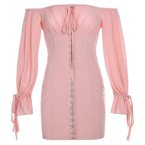 Hot Sale 2020 Xuân Hè Phụ Nữ Ăn Mặc Giản Dị Slash Cổ Lưới Chắp Vá Khóa Bodycon Dress